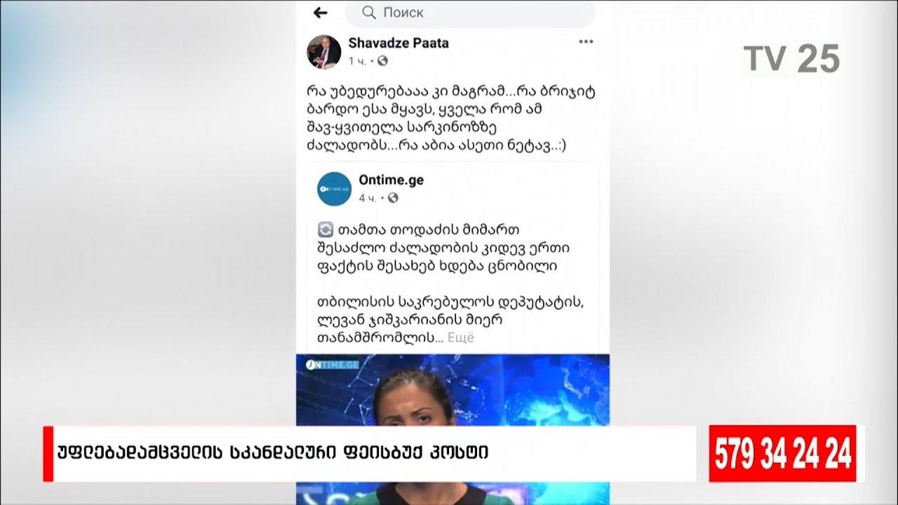 პაატა შავაძის ფეისბუქ სტატუსი, რომელსაც საზოგადოებაში არაერთგავაროვანი შეფასებები მოჰყვა. ეს ის ადვოკატია, რომელსაც უვადო მოსამართლეობა სურს. მისი ადრესატი კი ის ქალია, რომელიც თბილისის საკრებულოს დეპუტატს, სექსუალურ შევიწორებაში ადანაშაულებს. დაზარალებულის ადვოკატი პოსტს ამორალურს და სექსისტურს უწოდებს.