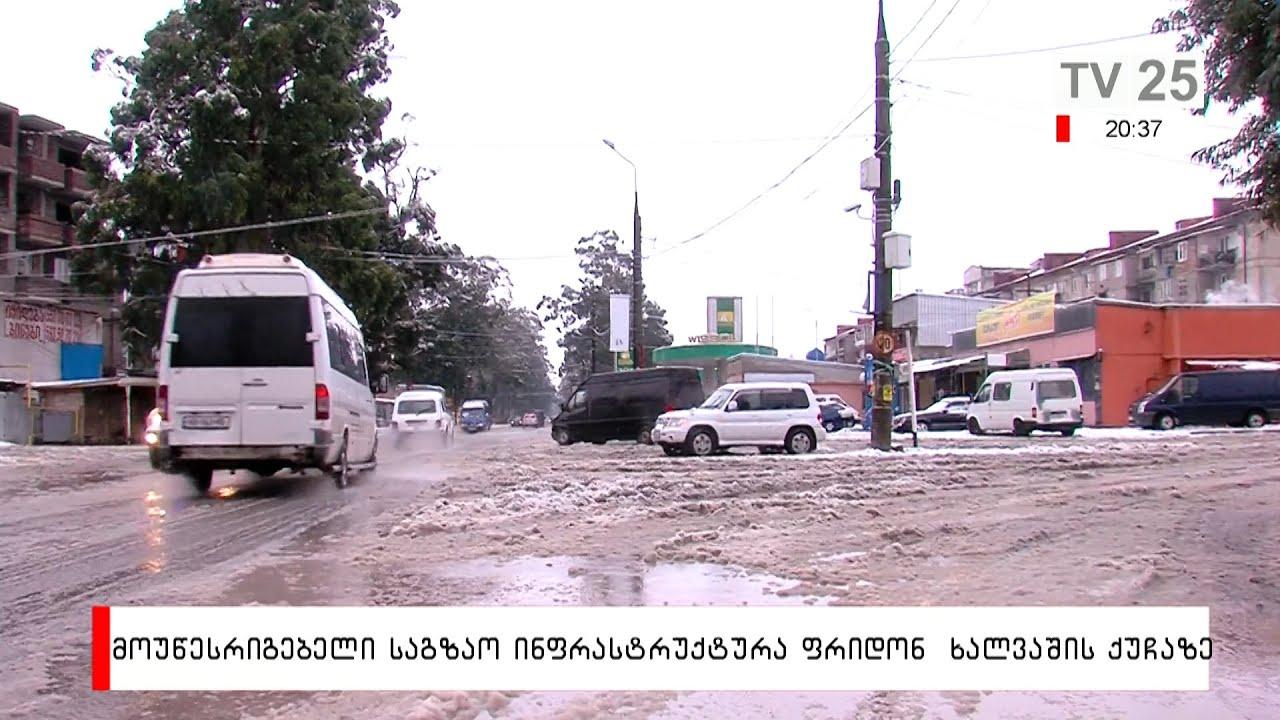 მოუწესრიგებელი საგზაო ინფრასტრუქტურა ფრიდონ ხალვაშის ქუჩაზე. ადგილობრივები ტროტუარის მოწყობას ითხოვენ. გზა, რომლითაც ბავშვები სკოლაში მიდიან, ქუჩაზე გადის. იქ მცხოვრებლები კი ფატალურ შემთხვევებს იხსენებენ და რისკების თავიდან აცილებას ითხოვენ. საქართველოს საატომობილო გზების დეპარტამენტი მიმართვას მერიისგან ელოდება, მერია კი - მოქალაქეების განცხადებას.