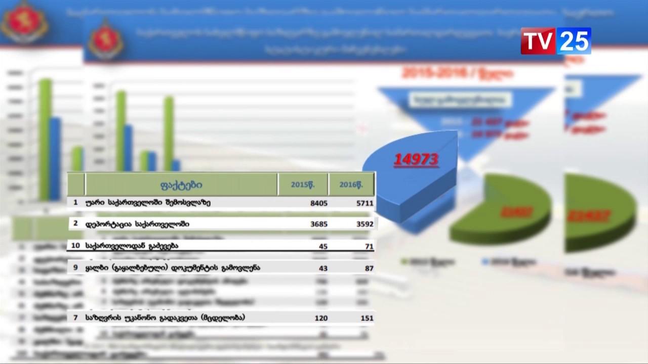 საქართველოს სახელმწიფო საზღვარზე 2016 წელს სულ სამართალდარღვევის 14 973 ფაქტი დაფიქსირდა. გასულს წელს საქართველოში შემოსვლაზე უარი ეთქვა სულ 5 711 მოქალაქეს. დეპორტაციას დაექვემდებარა 3 592, გაძევებას კი 71 პირი. გამოვლინდა ყალბი დოკუმენტაციის დამზადების 87 ფაქტი. საანგარიშო პერიოდში საზღვრის უკანონოდ გადაკვეთის 151 მცდელობა დაფიქსირდა . ყველაზე მეტჯერ საზღვის უკანონოდ გადაკვეთს სწორედ სარფის სასაზღვრო-გამშვებ პუნქტზე შეეცადნენ, მას მოსდევს თბილისის აეროპორტი და ლარსის გამშვები პუნქტი. მონაცემებს შინაგან საქმეთა სამინისტრო აქვეყნებს.